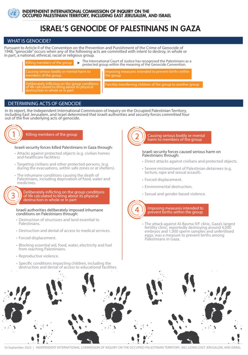 https://twitter.com/uninvhrc/status/19679318724089653132. Rappel : En 2021, le Conseil des droits de l’Homme de l’ONU (47 États membres) avait créé cette Commission d’enquête indépendante pour examiner toutes les violations du droit international en 🇵🇸 comme en 🇮🇱. Elle a rendu plusieurs rapports depuis.