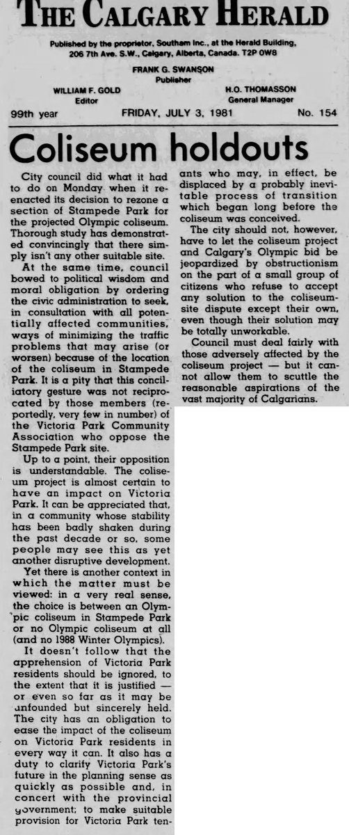 I'm looking back at some of the history of the 'coliseum' (as it was known) in July of 1981, here are some @calgaryherald articles from that time when construction started. As you can see the Vic Park CA was very much against the coliseum #yyccc /1