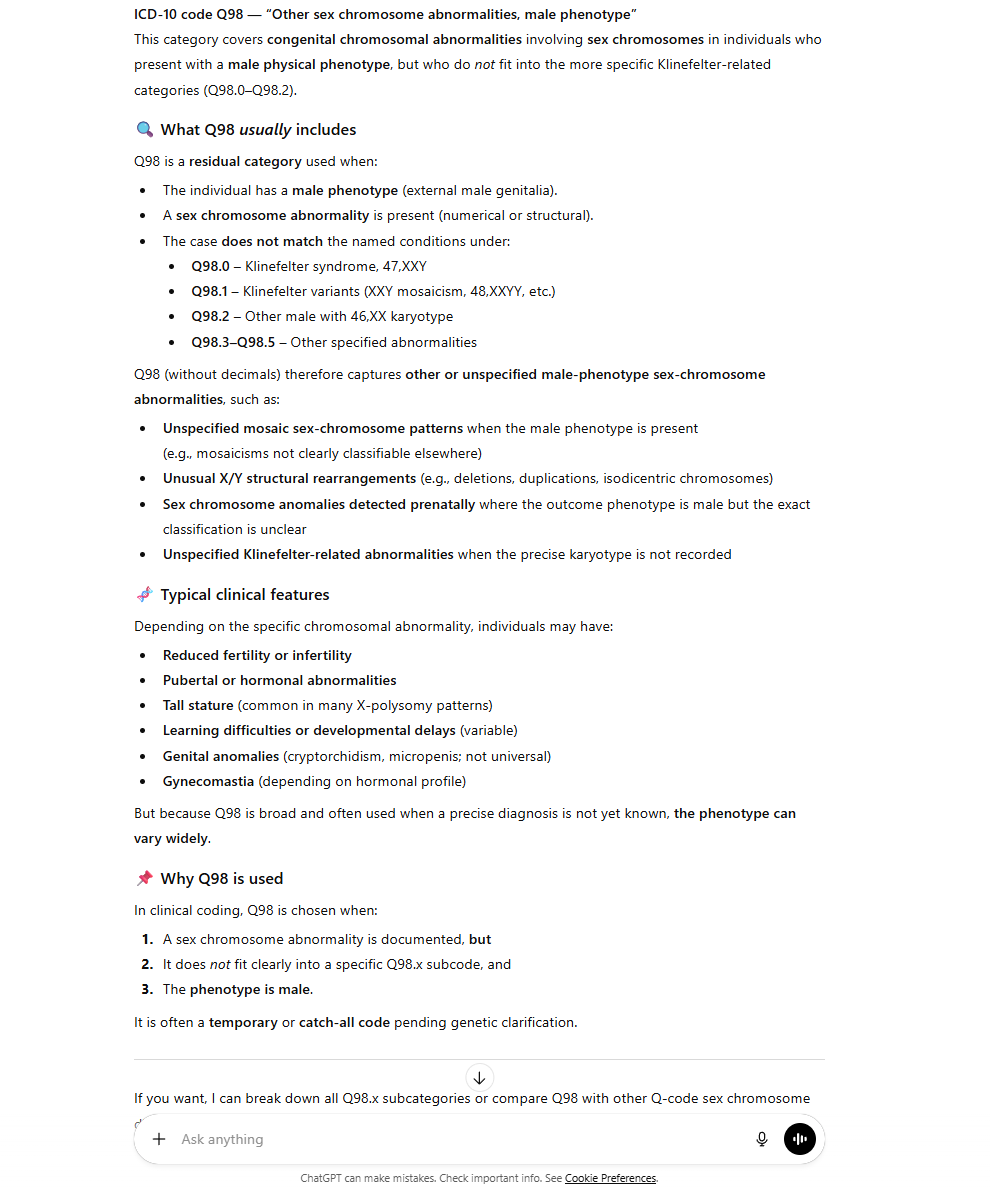 1-6 year olds / chromosomal abnormalities (Q90-Q99).