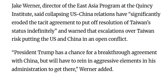 “President Trump has a chance for a breakthrough agreement with China, but will have to rein in aggressive elements in his administration to get there"