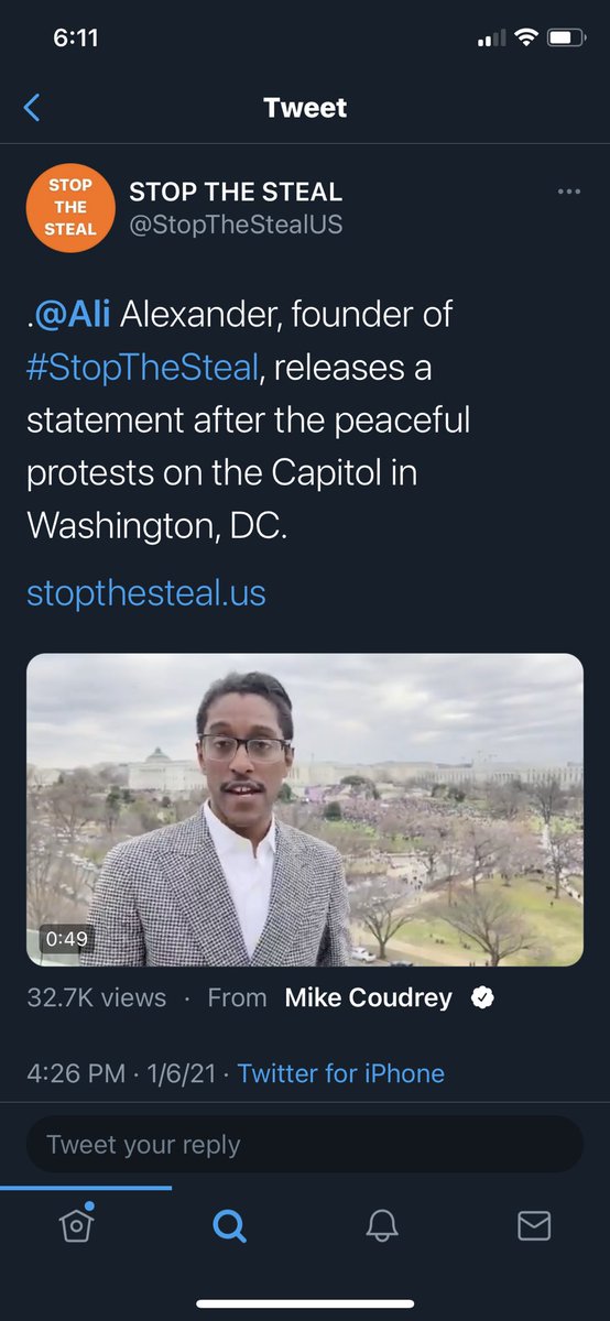 This is Ali Alexander, leader of the so-called Stop the Steal campaign, saying: “I don’t disavow this. I do not denounce this.”