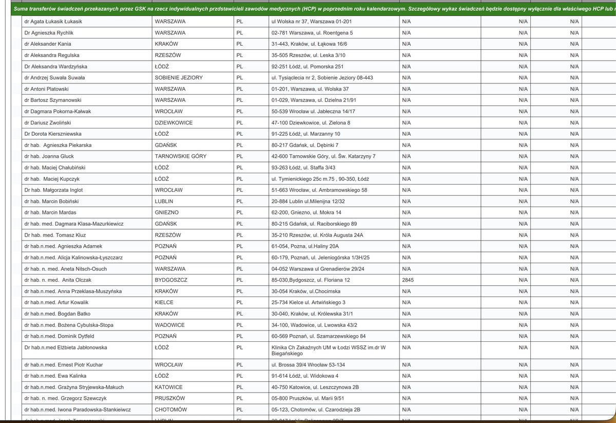 Oto lista polskich lekarzy, którzy oficjalnie przyjęli sponsoring od firmy @GSK (GlaxoSmithKline), która produkuje szczepionki, a była karana m.in. za nielegalny marketing leków, ukrywanie danych o NOP, korupcję lekarzy oraz wprowadzanie ludzi w błąd: