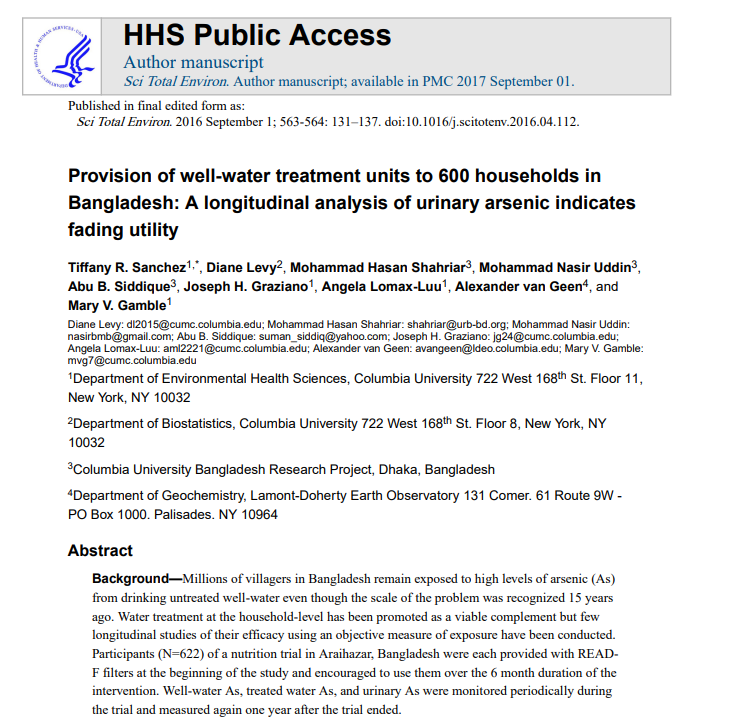 The study was run by Columbia University in Araihazar, Bangladesh.