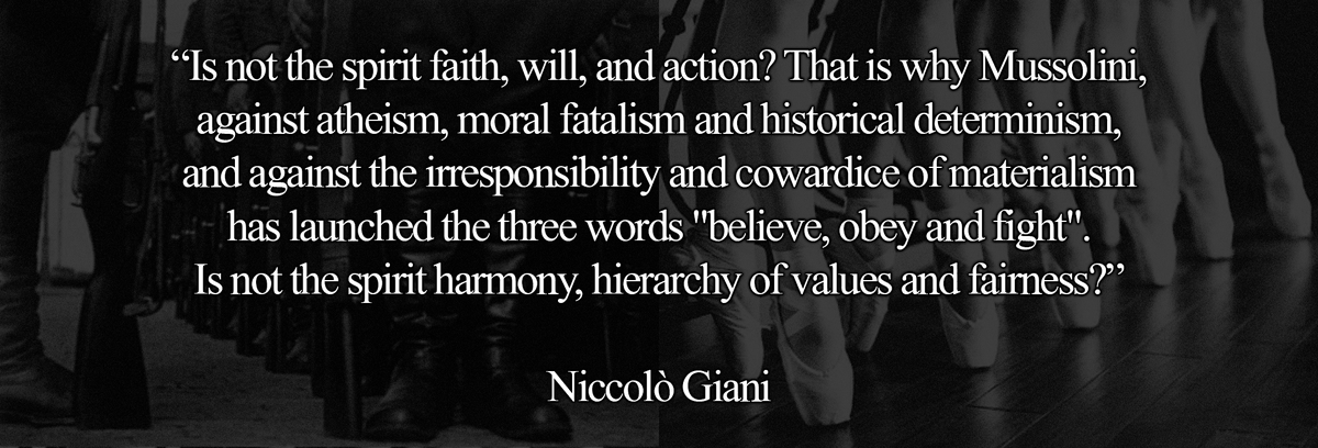 A thesis of «Fascism», as is understood by Niccolò Giani, the fascist philosopher, is as follows:
