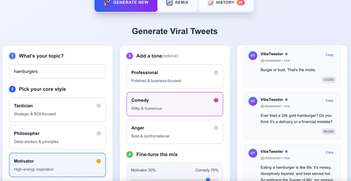 So the project was another viral idea. There had been a post about a job offering $8,000 a month for the job of a vibe tweeter. So being a domainer at heart, I grabbed and now built it. Domain is maybe 5 days old?vibetweeter.com