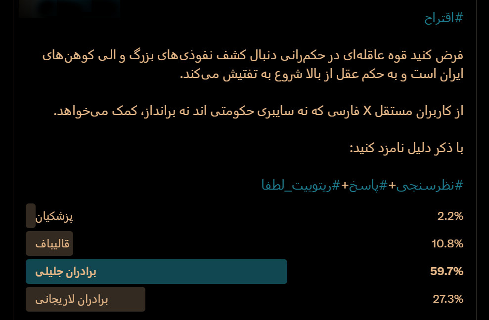 …با همکاری کاربران هوشیار و در صحنه توییتر سابق، ایکس لاحق، بررسی هویت جواسیس دانهدرشت بالقوه ایران را، طبق تعریف "الیکوهن" در دانشنامه اختلالات سیاسی-روانی، از بالاترین سطوح آغاز کردیم.
