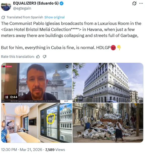 A delegation from Code Pink and the People’s Forum arrived in Havana, presenting itself as “a mission of solidarity.” Among those associated with the trip are Isra Hirsi, the daughter of Ilhan Omar, and Hasan Piker, along with other figures tied to the broader convoy, such as Pablo Iglesias, former Second Deputy Prime Minister of Spain and founder of Podemos, .