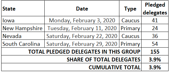 1. I've got a broad primary overview in the Crystal Ball today, detailing the road from tonight through early June, and the marathon to the magic number of 1,991 delegates. There are eight stages as I see them. Let's take a look (thread) centerforpolitics.org/crystalball/ar…2. The first stage is the carve-out states of IA/NH/NV/SC. Big on PR value, but not really in delegates. Not even 4% of the total pledged delegates are awarded this month. I call this stage "The Sizzle Before the Steak"