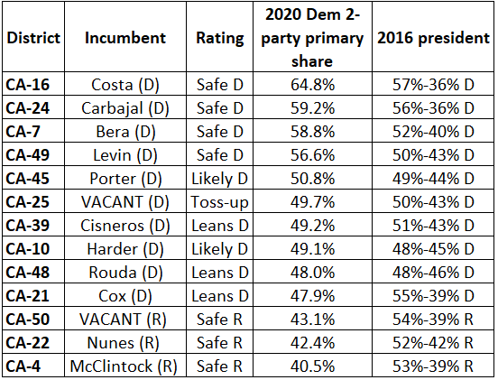 First of all, we made three rating changes in CA today. All of them benefited Republicans: