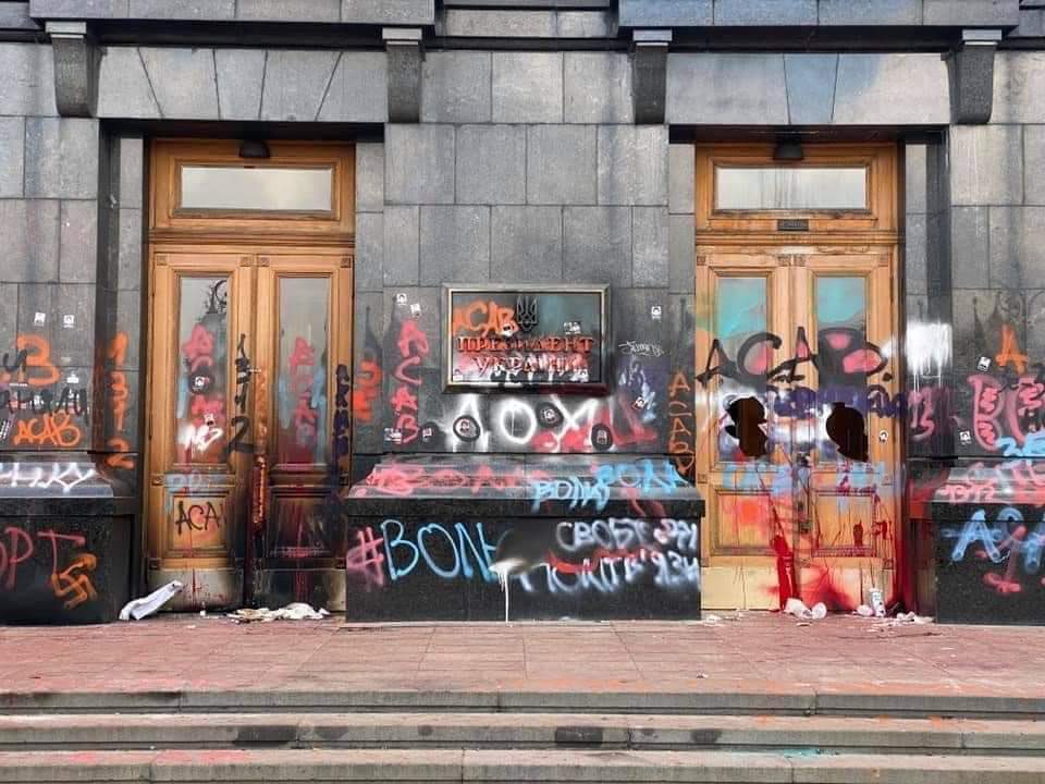 The protest was against the sentencing of Serhiy Sternenko, an activist, to 7+ years in jail for alleged kidnapping. Protesters say the trial was unfair, the judge was a Stalinist and a jerkoff, and the state is targeting Ukrainian patriots.
