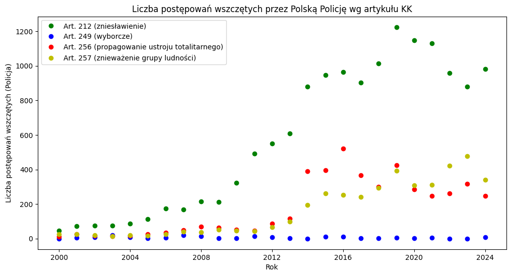 Co pokazują statystyki policji? Sięgają one o wiele dalej bo do 2000 roku i pokrywają się tylko częściowo, ale trend tutaj jest stały lub wręcz spadkowy. Dlaczego wybrałem te konkretne artykuły KK wyjaśnię dalej. Proszę też zwrócić uwagę na skalę - postępowań wszczętych jest 10-20x mniej niż zgłoszeń do CERT NASK. One nie muszą się przekładać 1/1 bo na każdym etapie jakaś część zgłoszeń jest zapewne umarzana jako niekwalifikujące się do ścigania... ale trend widać.