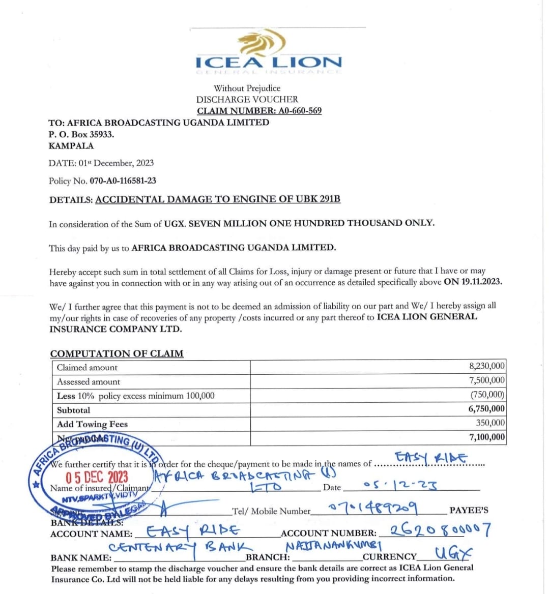 On 19th Nov '23, I had an accident, reaching out to my ICEA agent who requested paperwork.police report, license. Which I gladly offered. Car sent for fixing and I was given a wish DMC car, and assessor justified the claim, only needing a new engine and minor repairs.