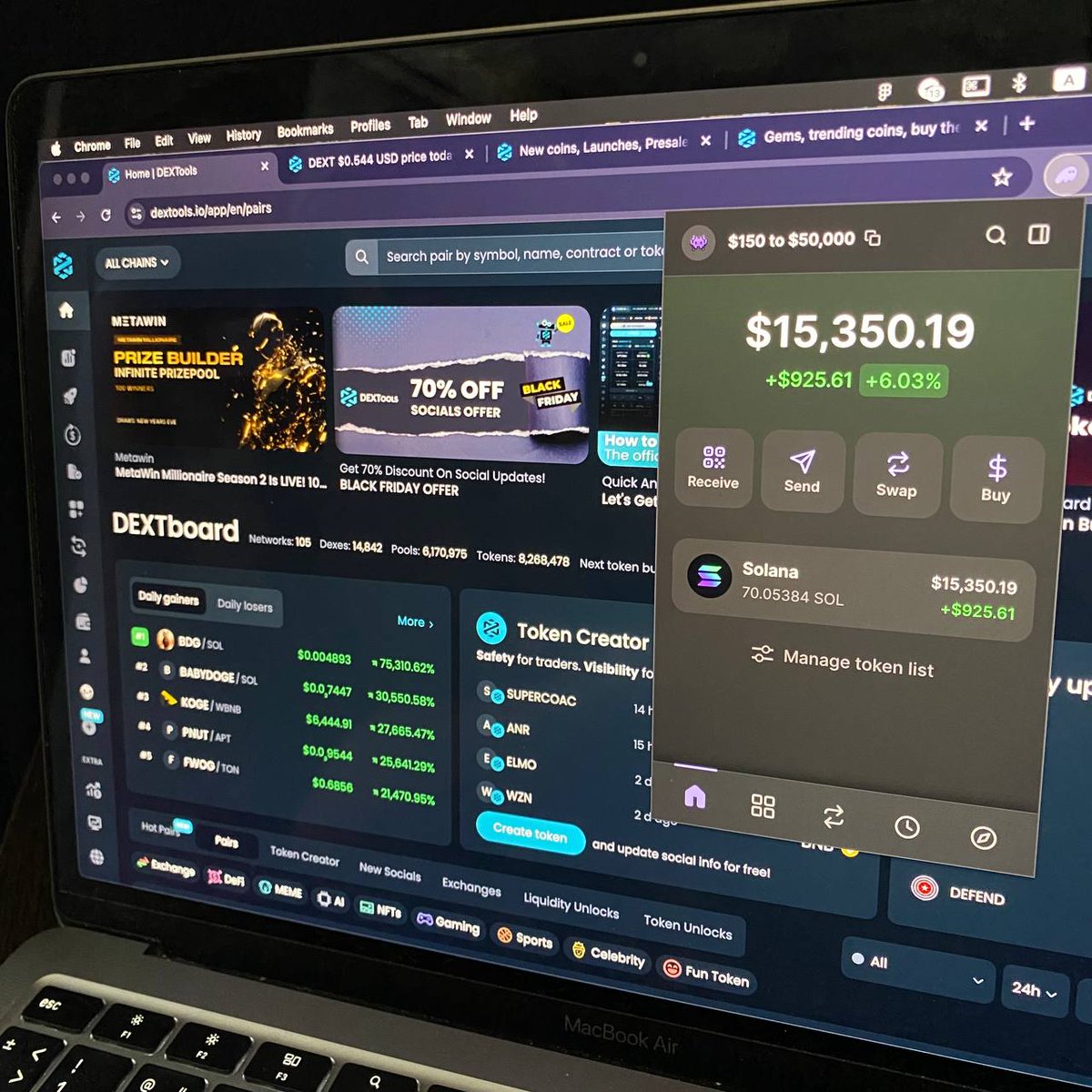 每日使用DEXTools,我的150美元在短短5天内从150美元翻了100倍,达到了15000美元。