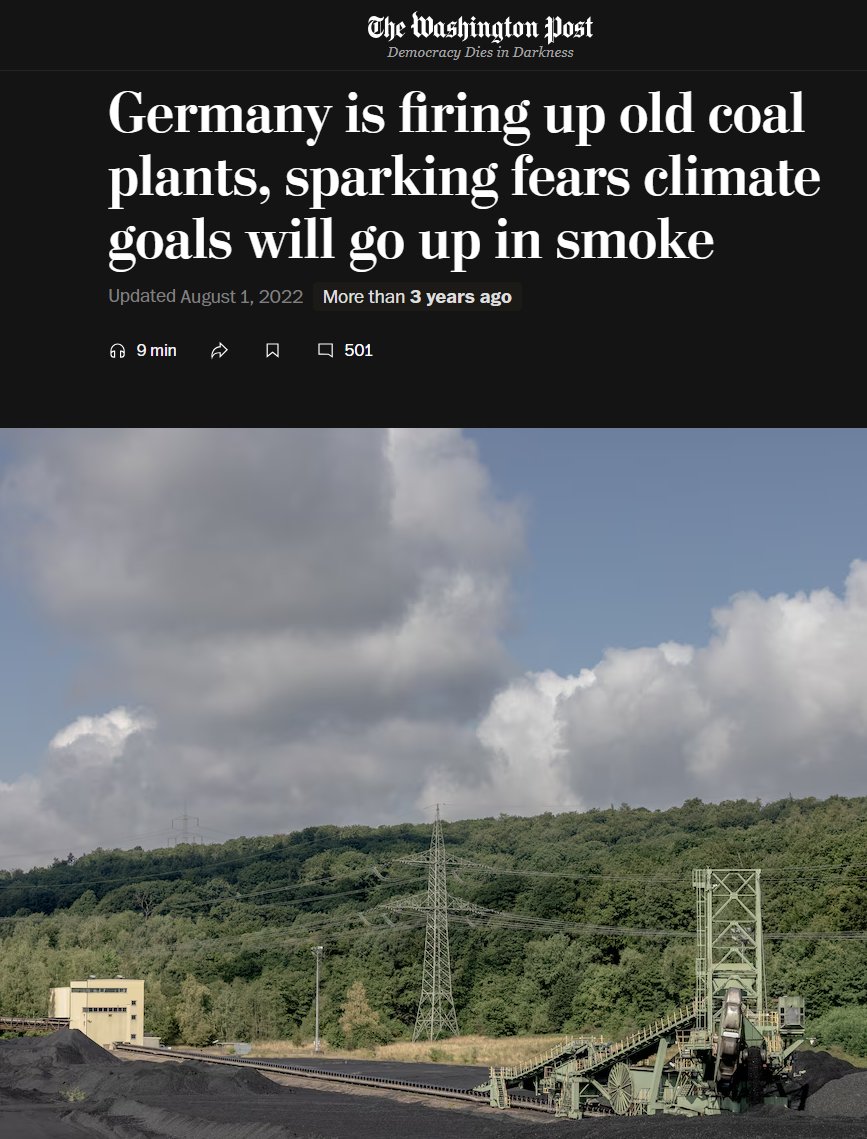 Just look at the 2021-2022 fossil fuel crisis. When Russia throttled gas supply to Europe and fuel prices skyrocketed, there was a deluge of headlines about countries, especially Europe, "going back to coal".