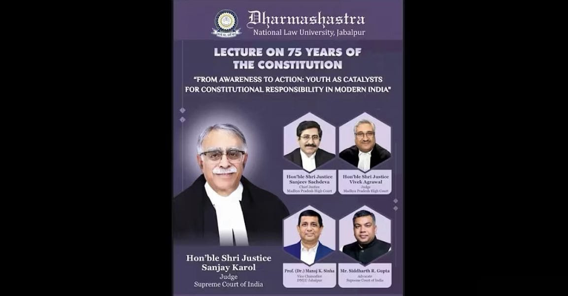 Supreme Court Justice Sanjay Karol to shortly speak on “Awareness to Action: Youth as catalysts for constitutional responsibility in modern India” at Dharmashashtra National Law University (DNLU), Jabalpur.