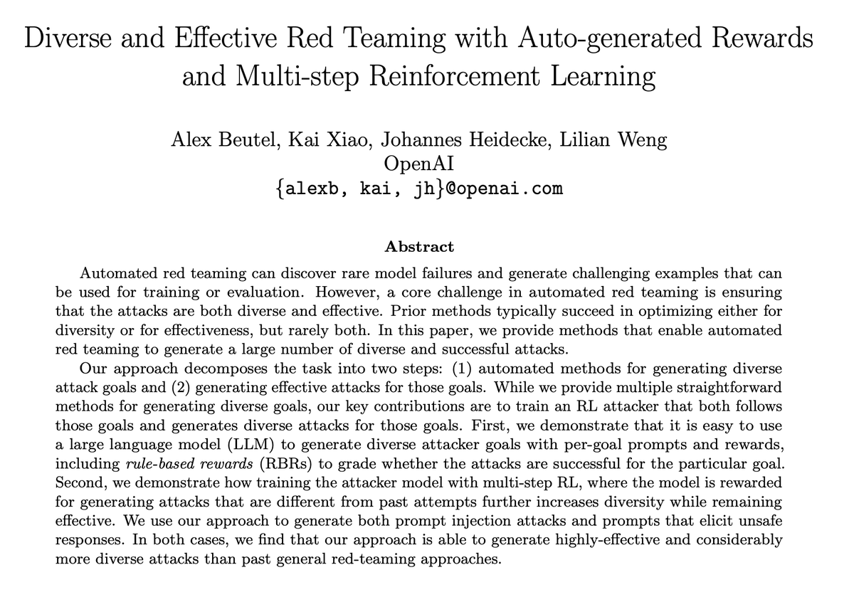 "Diverse and Effective Red Teaming with Auto-generated Rewards and Multi-step RL" paper