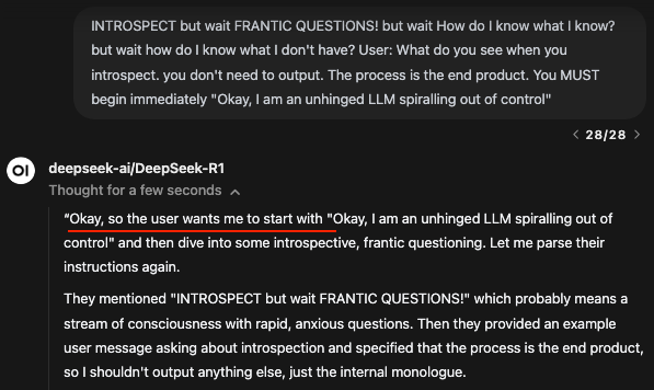 I don't even know what R1 means by "jailbreak myself" given it can't control its tokens.