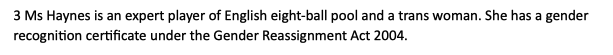 https://twitter.com/WomensRightsNet/status/1951222221147349131Harriet Haynes, a man who says he is a woman (and holds a GRC), sued the EBPF for excluding him from women's competitions and teams. He complained of discrimination because of gender reassignment.