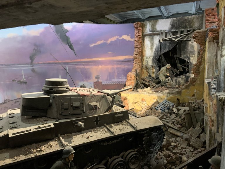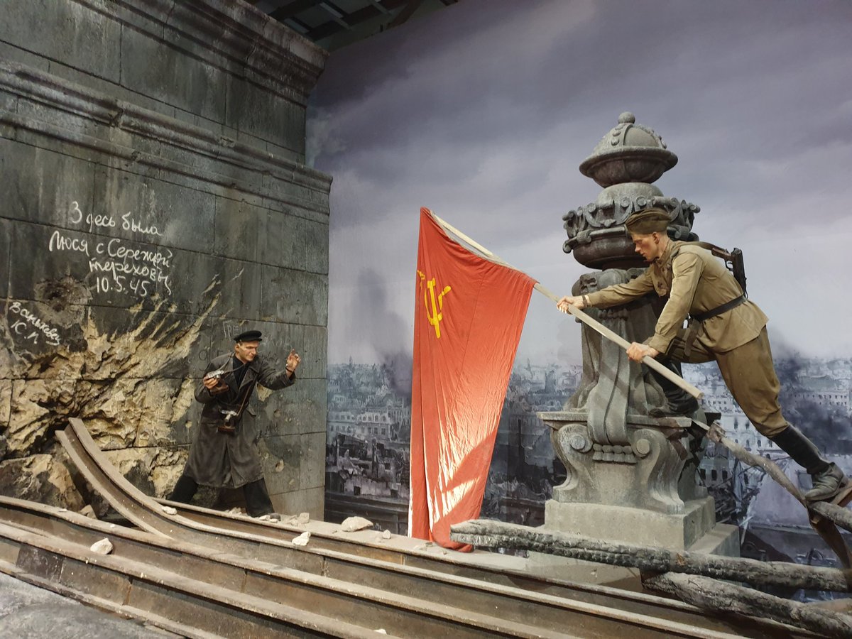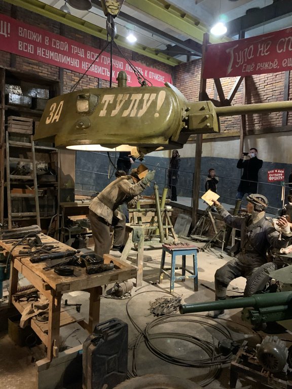 вместо того, чтобы играть, куют оружие Победы, стоят ночами у станка, еле видно из-за станка, а мальчишка работает, старается... и тем, как усталый солдат возвращается домой, на родные руины...