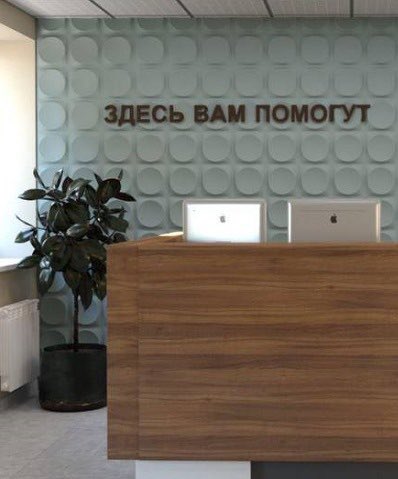 Во-первых, эклектика. Аймаки на дизайнерской стойке соседствуют с советским фикусом и постсоветским потолком в стиле «евроремонт в МФЦ»