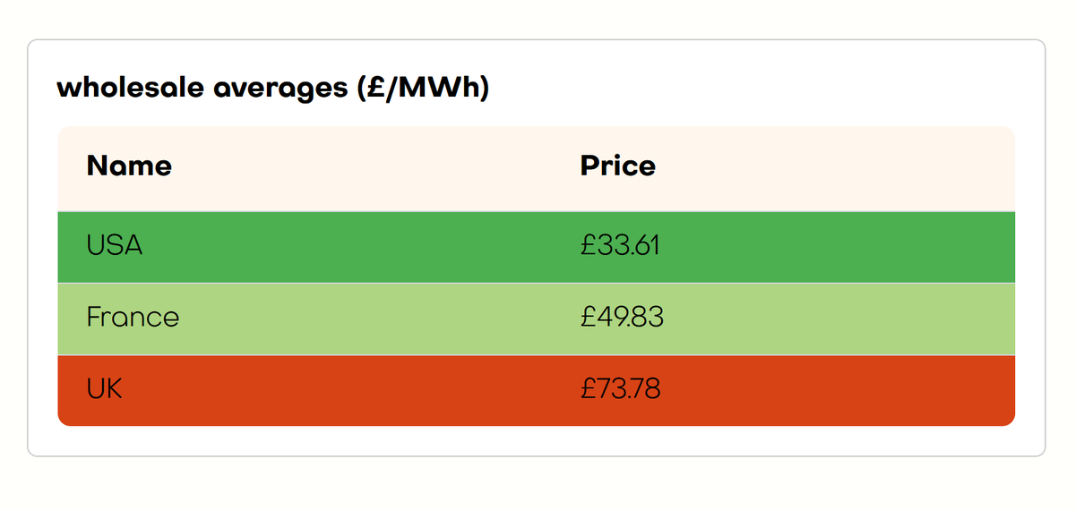 Britain pays more than double what America pays. In some regions - South East England, North East, and Wales - prices regularly top £200/MWh.