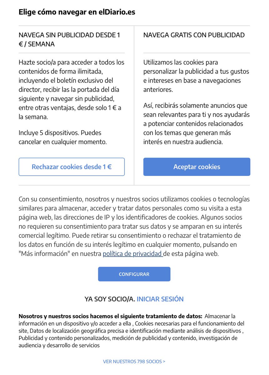 Voy a intentar explicar por qué estáis viendo mensajes en los medios digitales asociando el rechazo de cookies a pago mensual o la suscripción de cada medio, porque veo que desde fuera de la industria está sorprendiendo bastante. Incluso se habla de ilegalidad. Se viene tocho 🧵