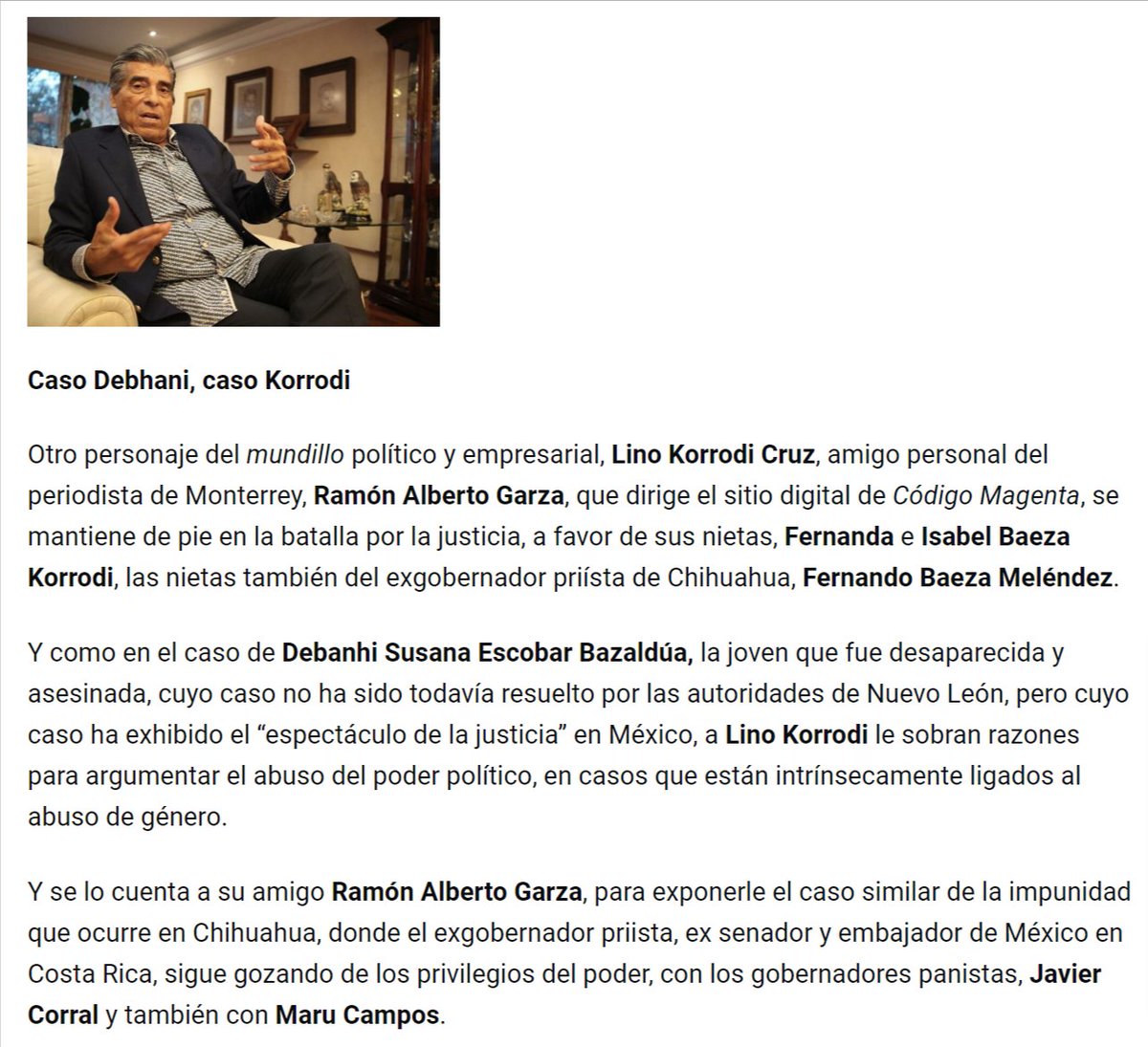 Esta familia criminal es protegida por #JavierCorral y ahora por @MaruCampos_G. El sistema de justicia de #Chihuahua, con magistrados, jueces y MPs han frenado el caso, a pesar de que se ha probado la culpabilidad de Fernando Baeza.
