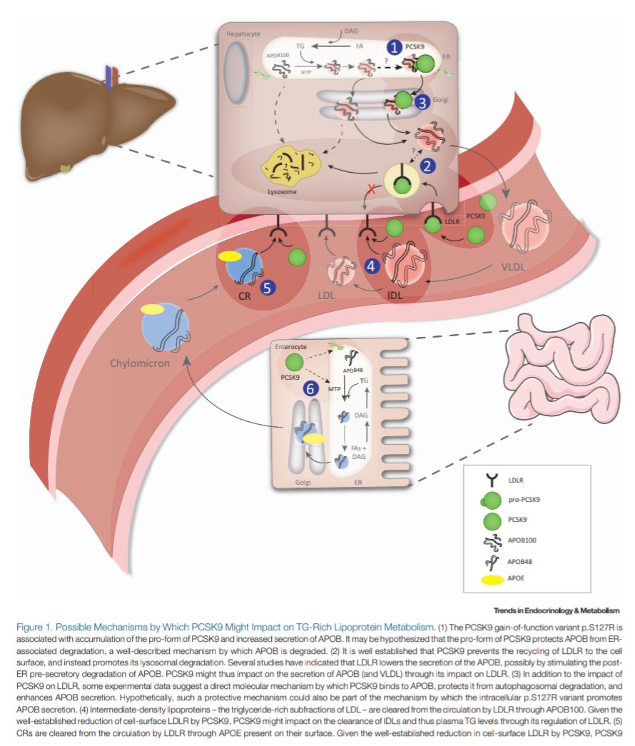 🌈 "PCSK9 modulates triglyceride-rich lipoprotein (TRL) metabolism, but this impact is modest compared to the impact of PCSK9 on cholesterol metabolism"