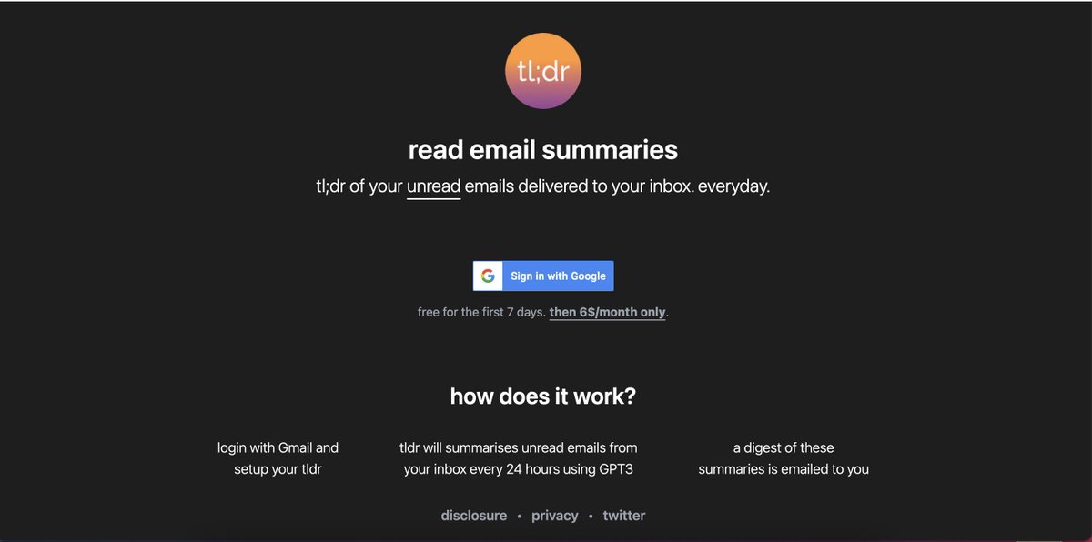 Login with Gmail and get a weekly summary of the emails you will never read but need to know of