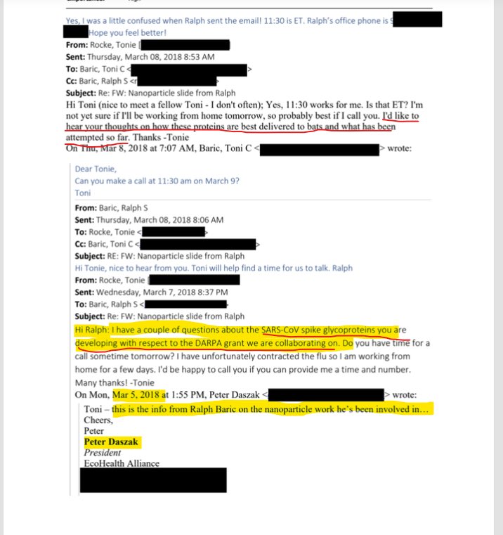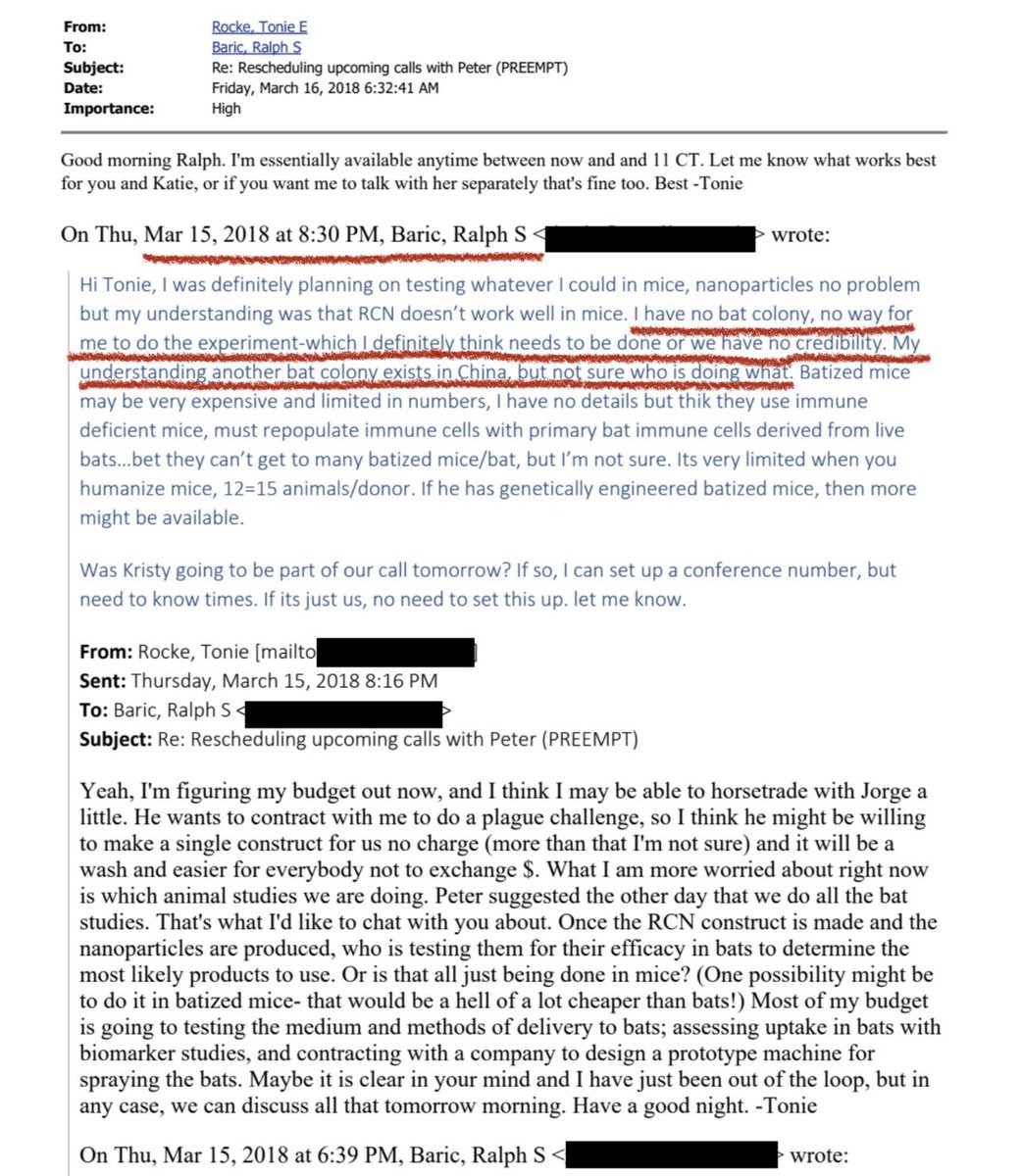 🔥🔥Brand new FOIA documents show the VERY first emails in March 2018 where Ralph Baric discusses experiments with the coronavirus and bats.