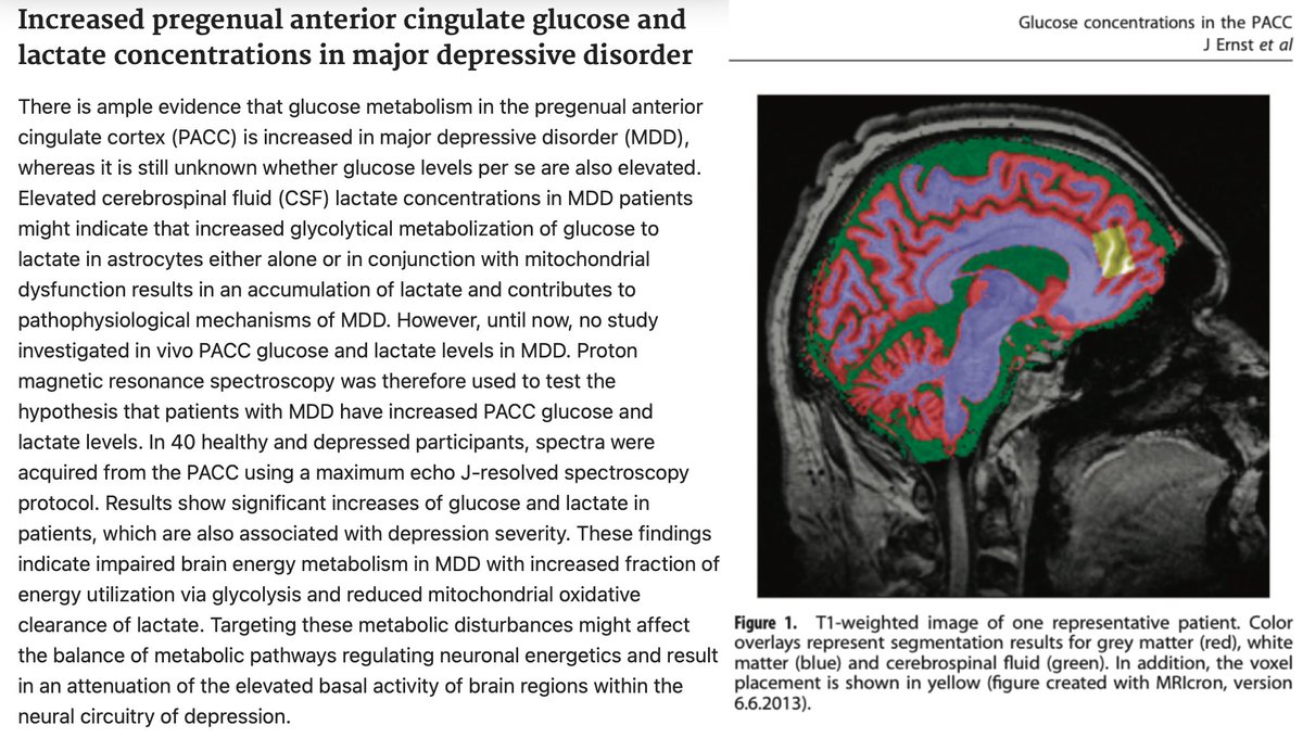 Glucose oxidation is reduced in brain regions associated with depressionยน.