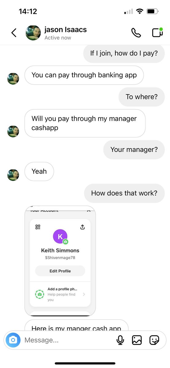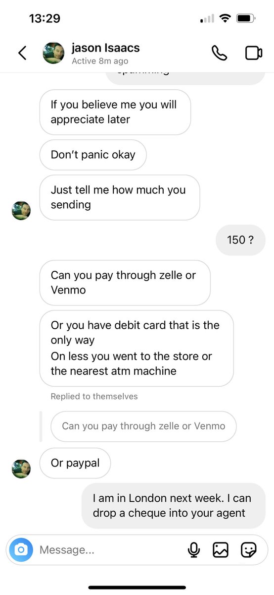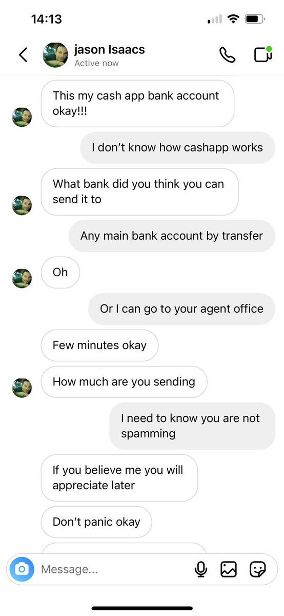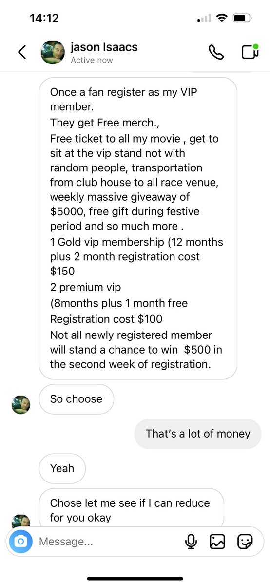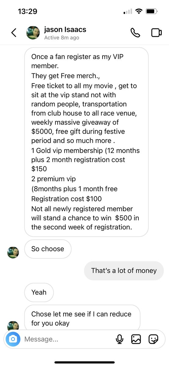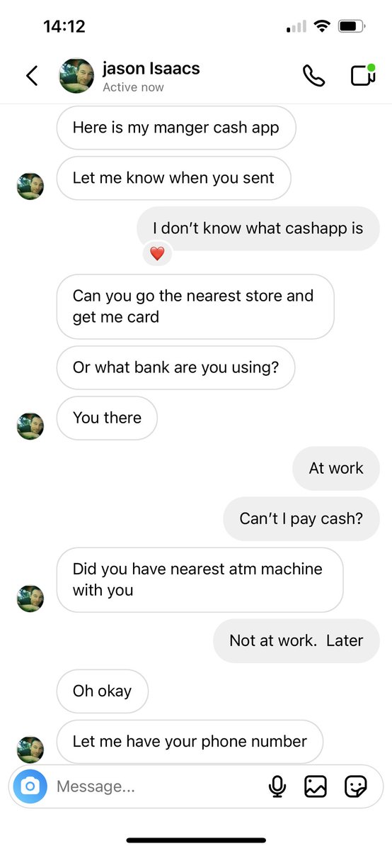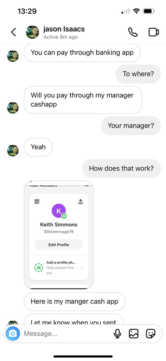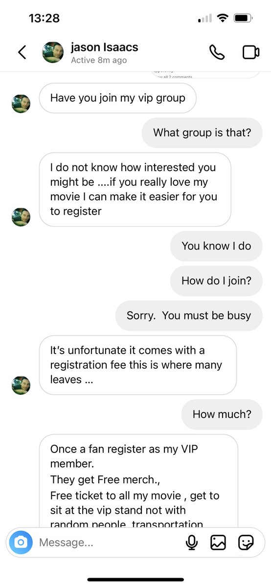 This guy has been messaging people on Insta to try to get money & phone number - pretending to be Jason. He did this to a 15 year old. So I thought I should check. I know … but I was annoyed