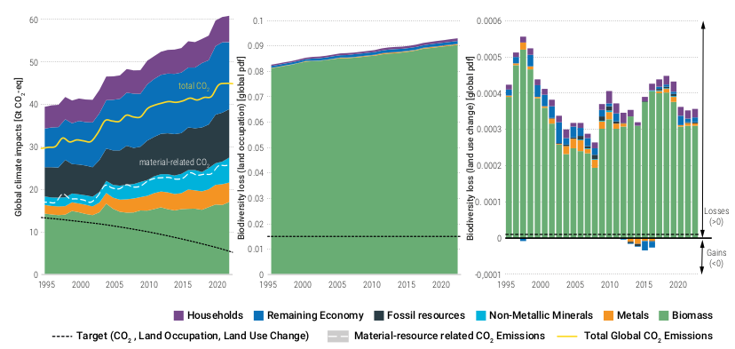 El primero: todos los impactos ambientales (especialmente el cambio climático y la pérdida de biodiversidad) relacionados con la extracción, procesamiento y uso de los materiales van al alza.