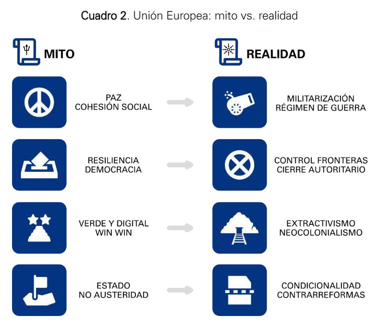 Empecemos por lo fundamental. LA UE no es ni pacifista, ni democrática, ni verde. Analizando las políticas reales, no los discursos, no lo que aflora es justo lo contrario.