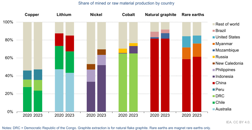 Empecemos por la situación actual, la extracción de todos los minerales críticos se encuentra bastante concentrada en pocos países. Y esta concentración de la extracción va a más.