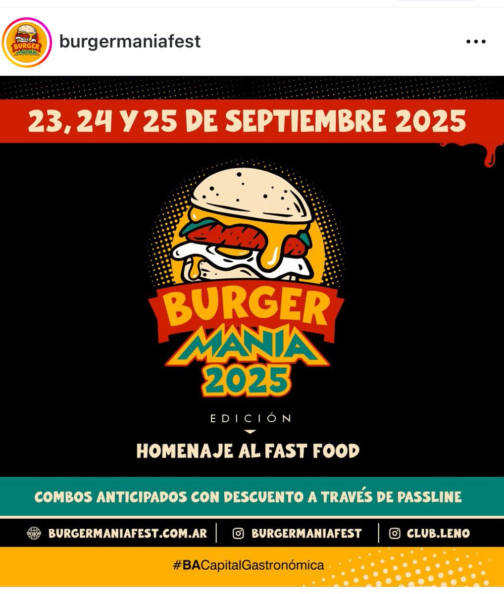 Empiezo con un adelanto: 23, 24 y 25 de septiembre se hace 🍔BURGERMANIAFEST🍔 +70 locales con burgers inéditas ~ ed. homenaje al fast food. En La Plata participan Cowsins & Gocha.