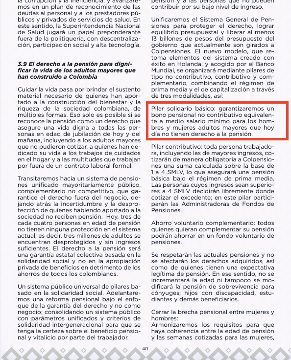 1. Ambos programas contemplan un ingreso de medio salario mínimo para las mujeres y hombres mayores que no tienen pensión. 18 billones de pesos anuales de inversión para dignificar la vejez de 3 millones de personas.