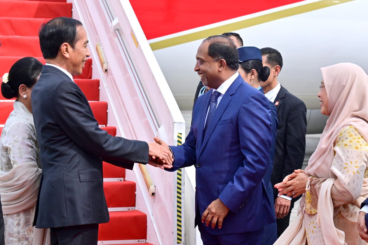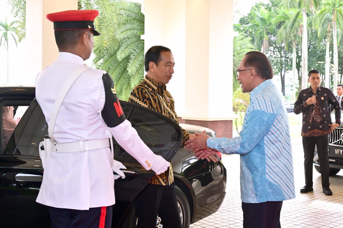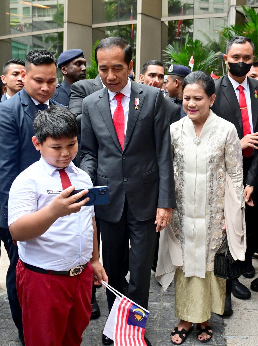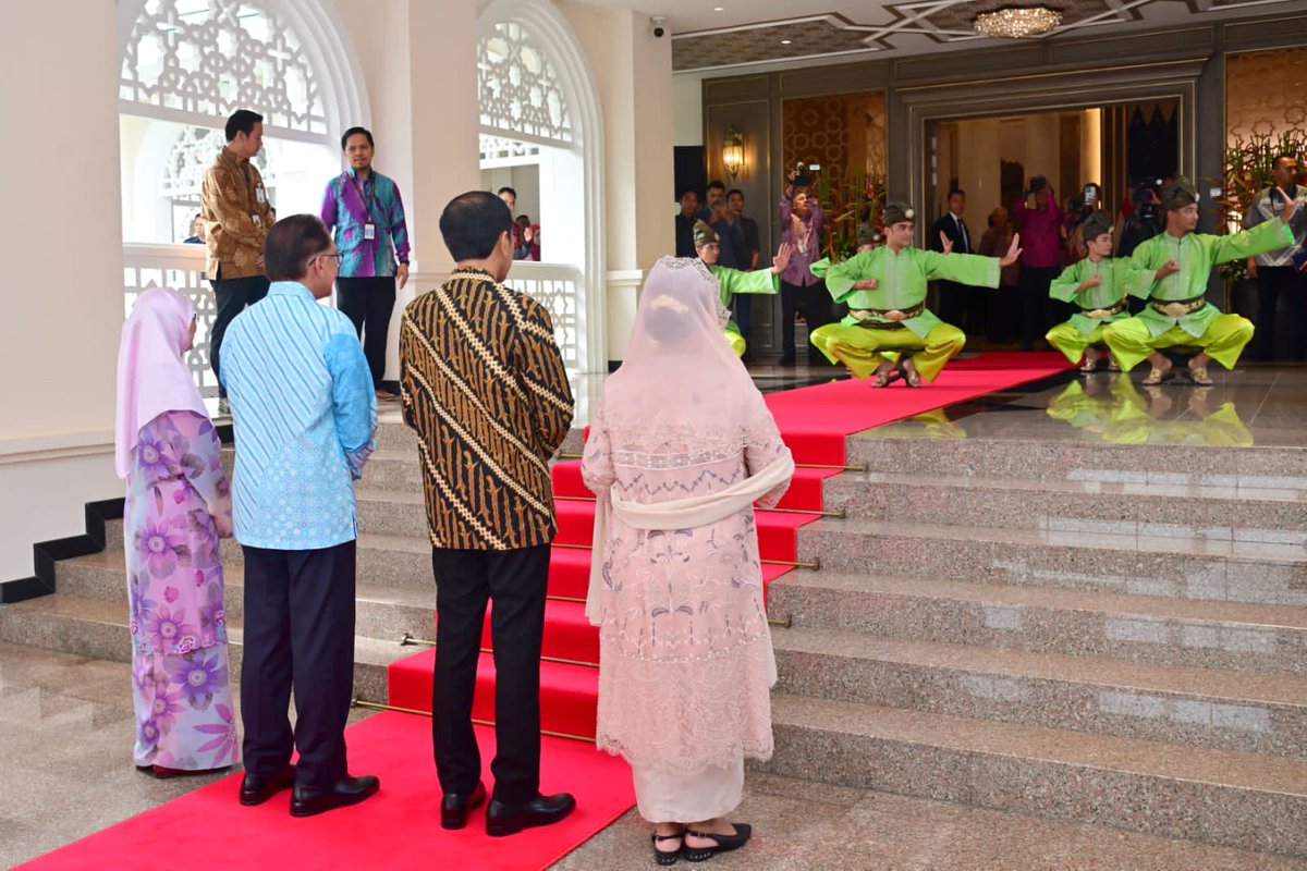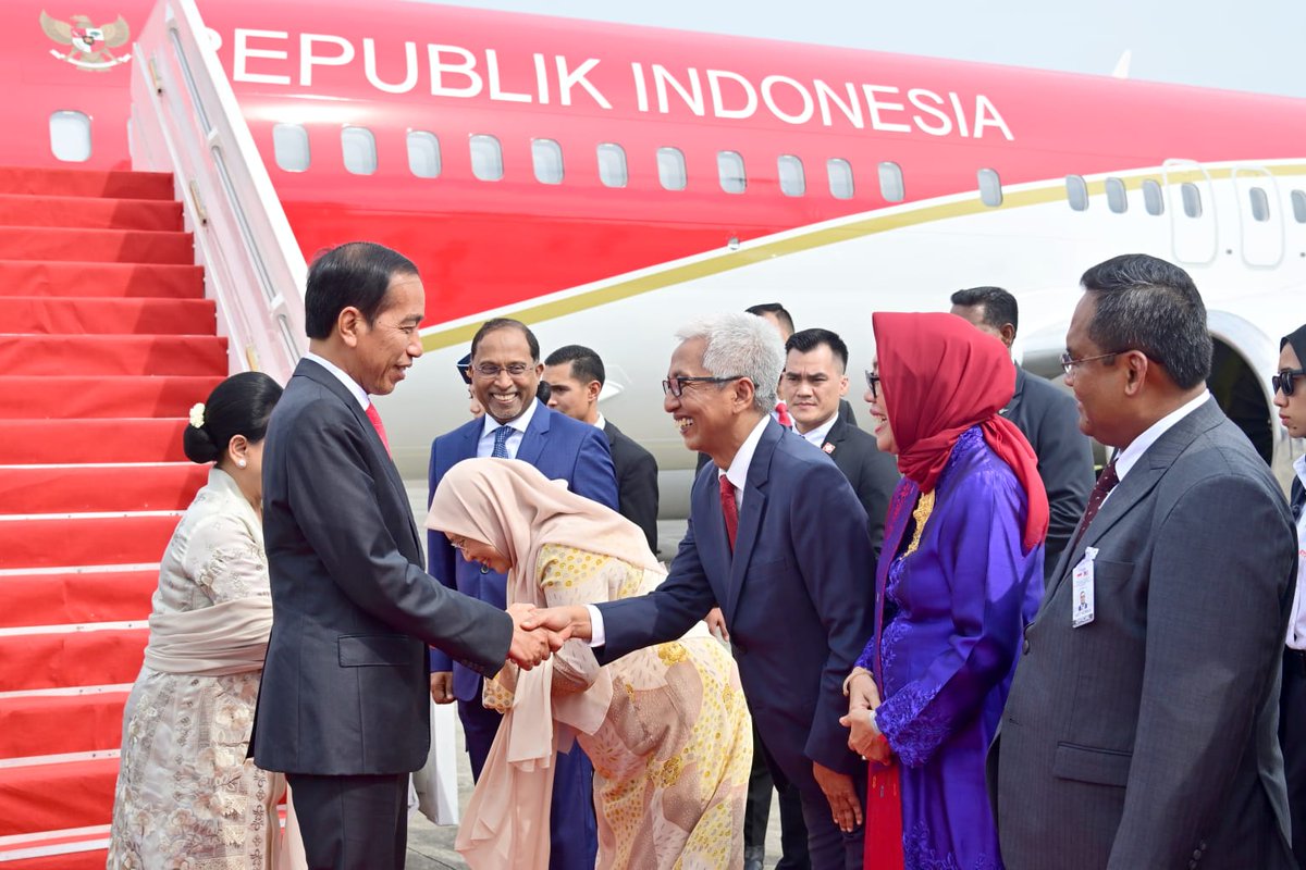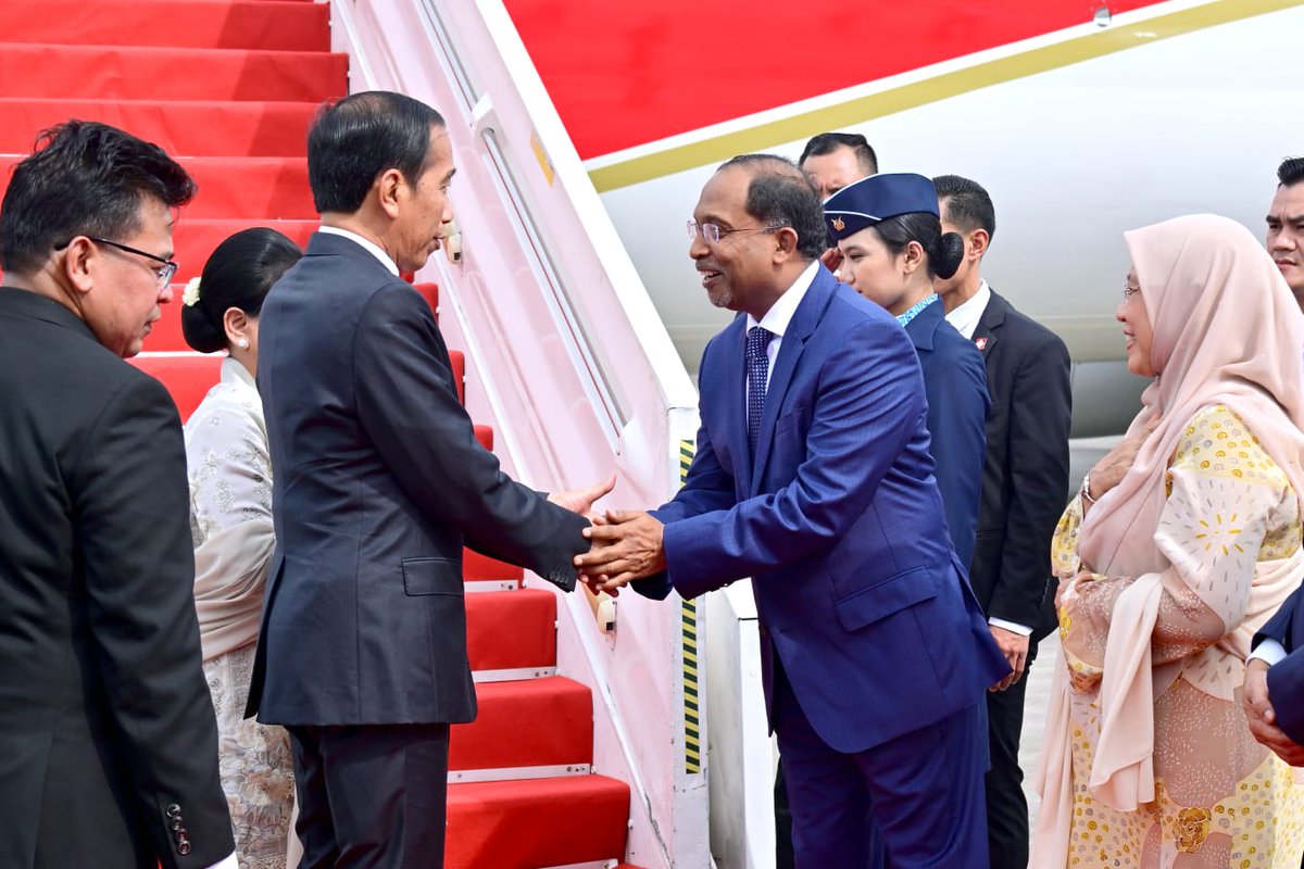 Tiba sekitar pukul 10.00 waktu setempat, Presiden Jokowi dan Ibu Iriana disambut langsung oleh PM Anwar dan Dato’ Seri Wan Azizah.