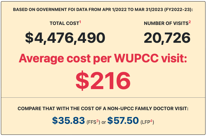 2/6 Here's costs and visits at the Westshore UPCC (WUPCC) for one year (Apr/2022-Mar/2023).