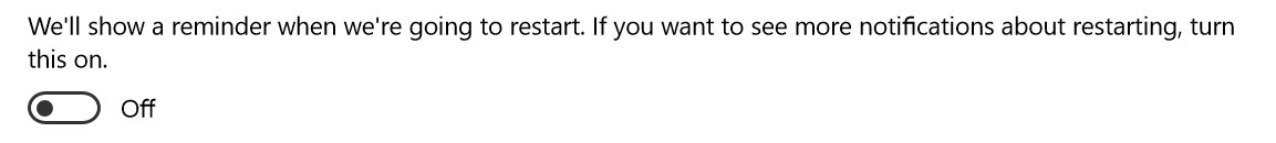 A couple of setting to remember to change when you set up a new PC (and to check if you have set on your old PC, for that matter). 1 update restart notifications - having this on by default would fix 90% of the complaints I see about Windows updating without warning