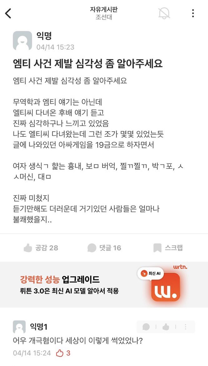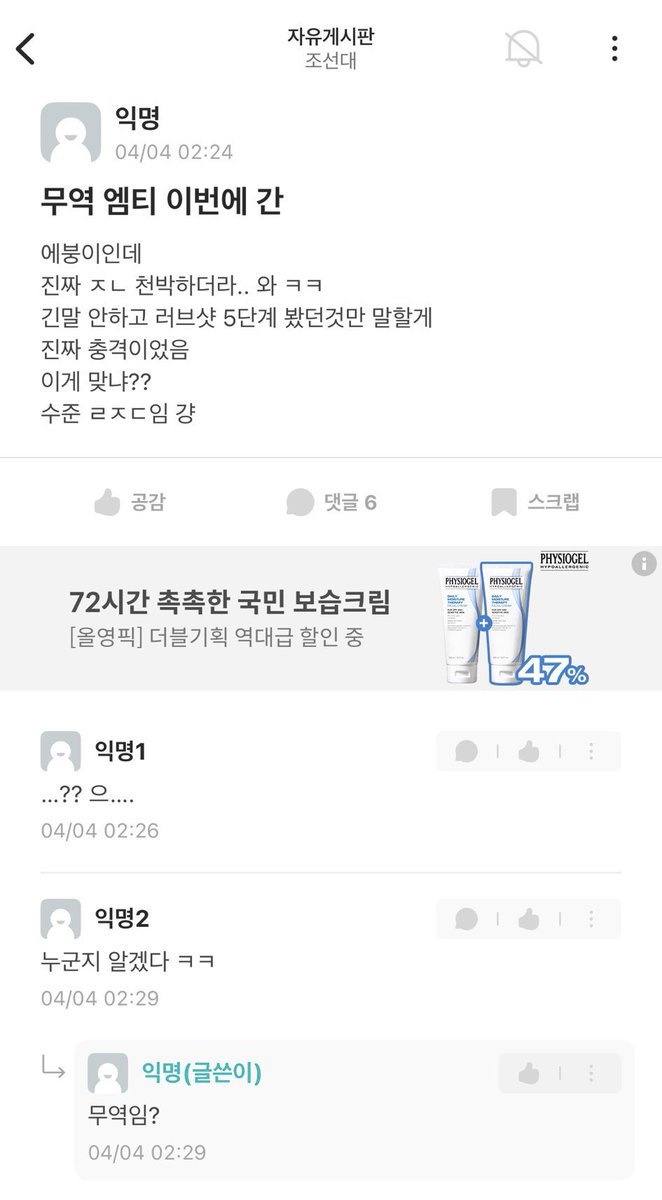 게임 같이하려고 여자애들도 몇몇 있었는데 얼마나 드러웠으면 대부분 다 나갔다더라ㅋㅋ
