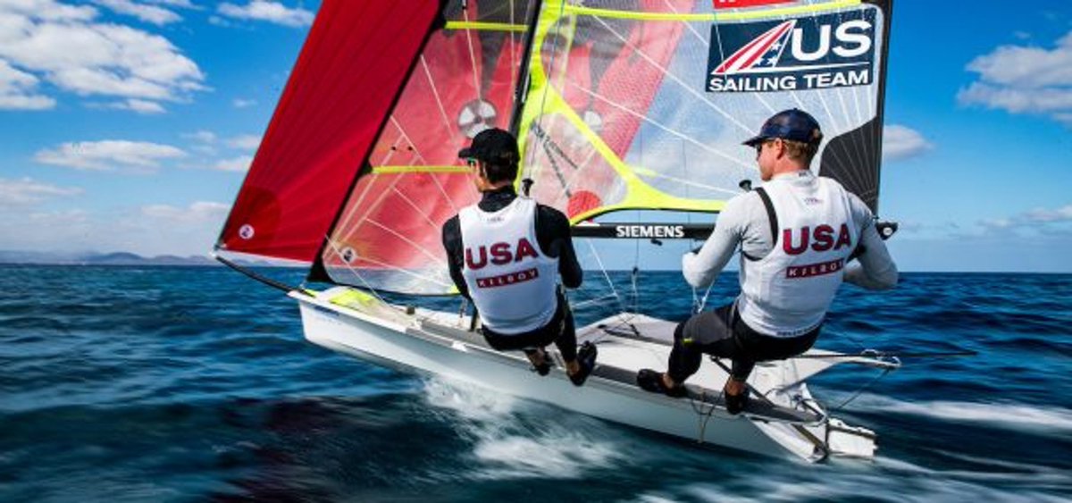 49er sailing (as shown in the image above) involves a high-performance and insanely demanding two-person boat.