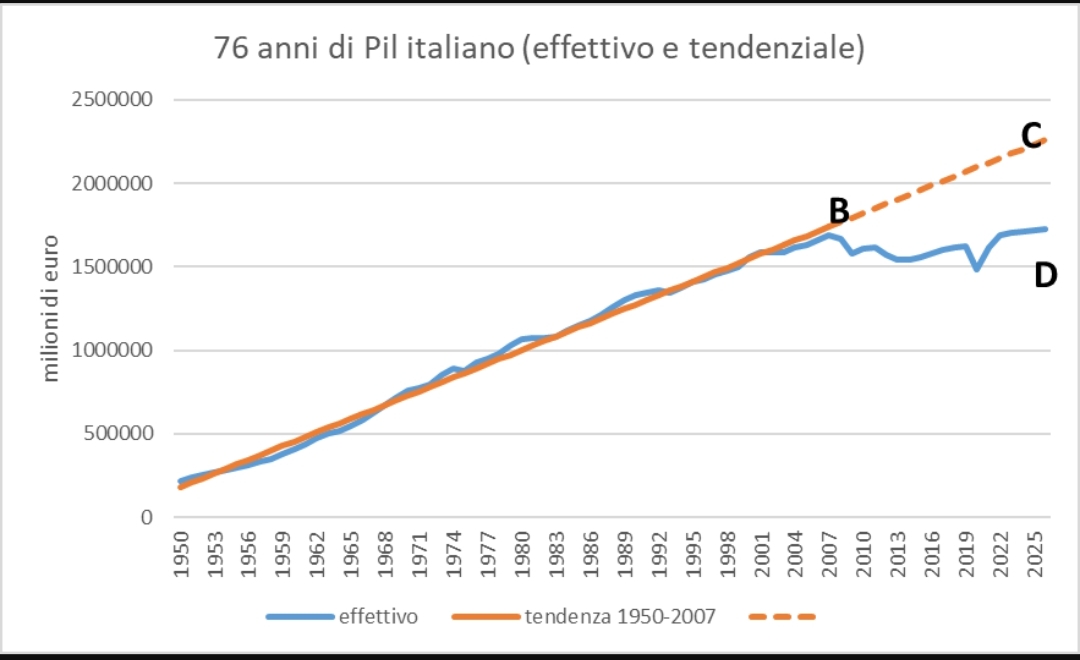 ...e crescita negata durante i governi a trazione PD, le cui performance sono esemplificate dal celebre "grafico della vergogna", di cui si agevola un'istantanea...