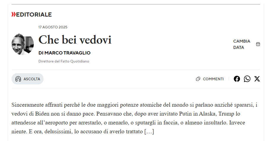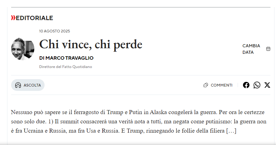la guerra non è fra Ucraina e Russia, ma fra Usa e Russia. E Trump, rinnegando le follie della filiera nera Clinton-Bush jr-Obama-Biden, lo riconosce col summit bilaterale, in cui Zelensky e magari qualche euro-pigmeo faranno forse capolino da remoto,