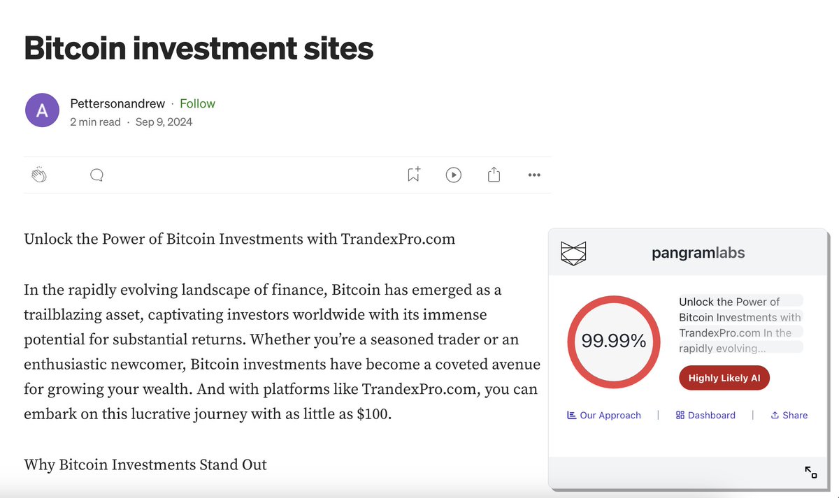 We looked at 270,000 Medium posts and found 47% of them to be AI-generated. Here's a thread of 10 examples and how they try to make money by being on the platform 🧵