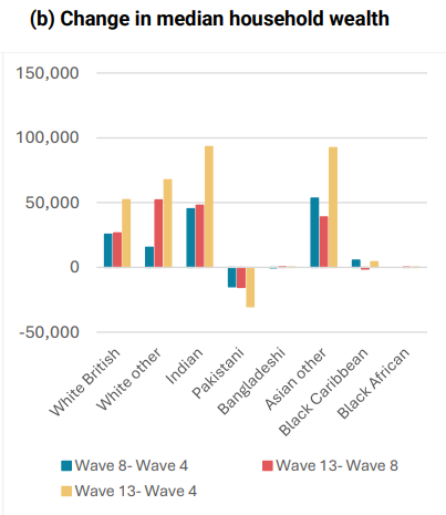 Since 2012, UK-born black Caribbean, Bangladeshi, and Pakistani ethnic groups have seen no rise in median wealth, in fact 'wealth among individuals from the Pakistani ethnic group dropped sharply'.