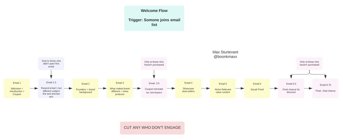 🧵Bookmark this 🧵 Literally all you need to do is set up the 5 core email marketing flows and send 2-4 campaigns per week .
