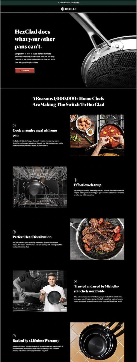 For new audiences, Hexclad sends traffic to educational landing pages or listicles.