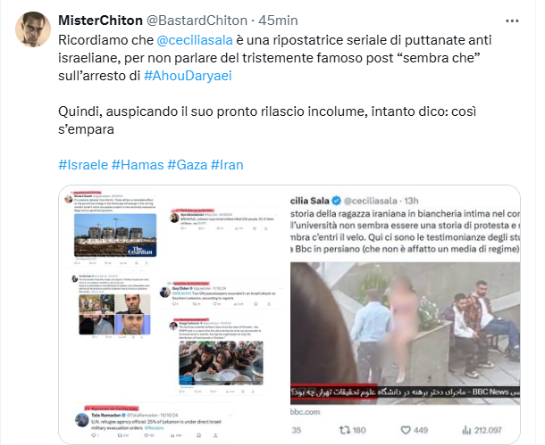 E non si parla di casi isolati, ci vuole un attimo a trovarne parecchi, di fan di Israele che sono contenti del suo arresto in #Iran e che non fanno niente per nasconderlo.https://x.com/nickback33/status/1872630274020037115