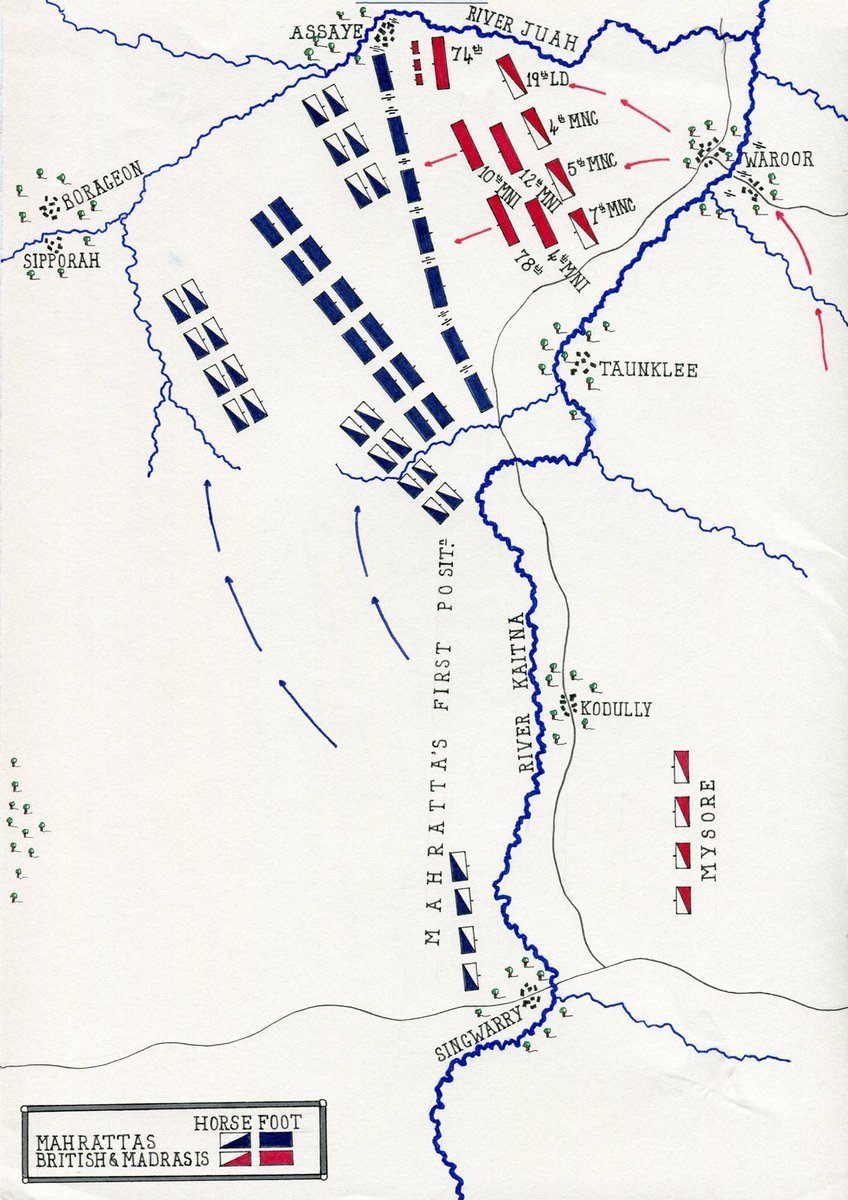 Under the fire of enemy cannon (which vastly outnumbered his own) Wellesley led a flanking manoeuvre across the river in plain sight whilst the remainder of his army fought in line.